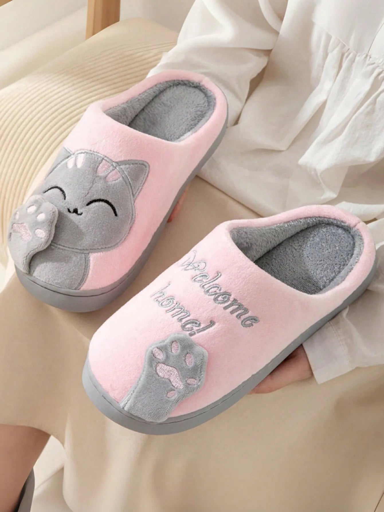Pantoufles Maneki Neko en coton pour la maison