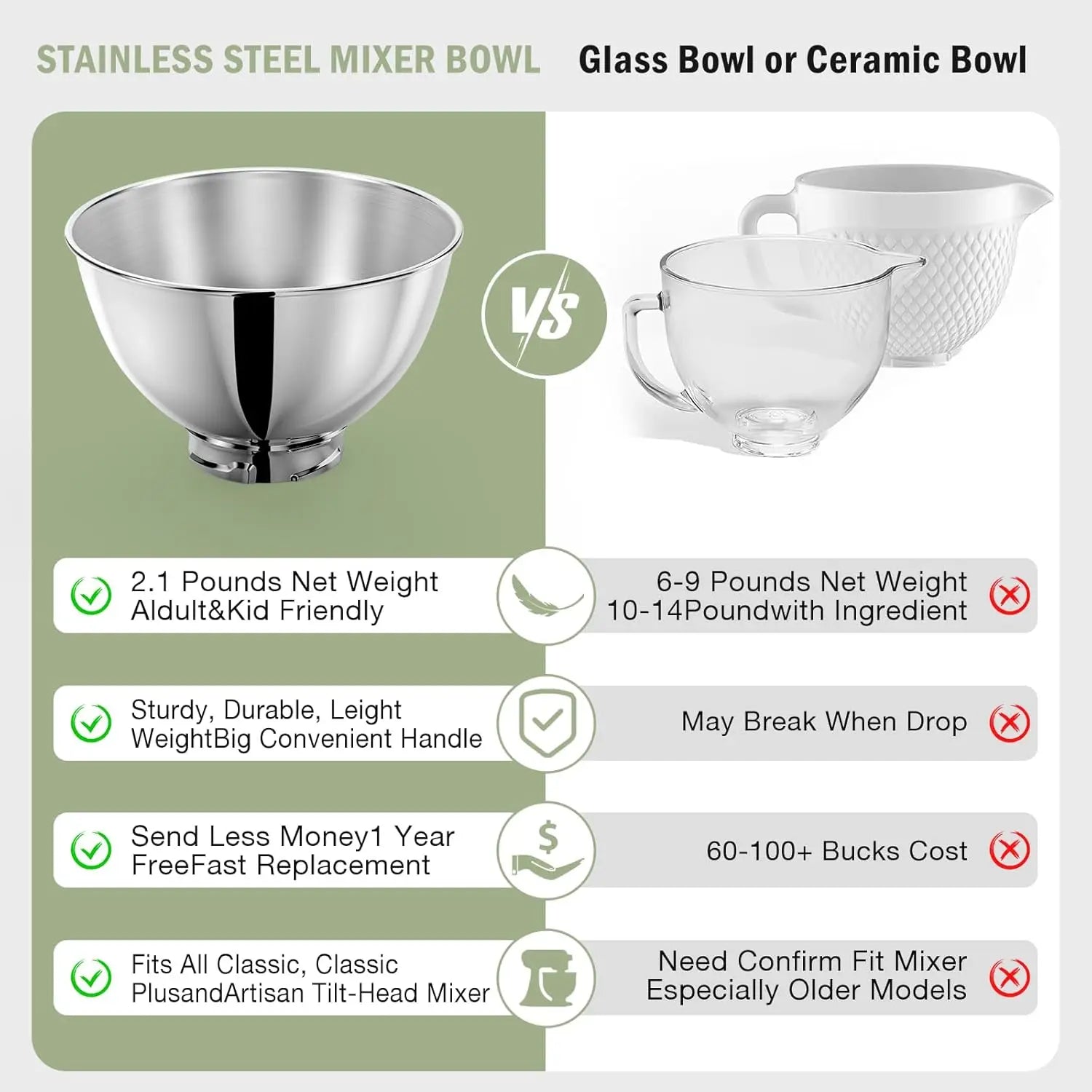 3L Stainless Steel Bowl for KitchenAid Mixers