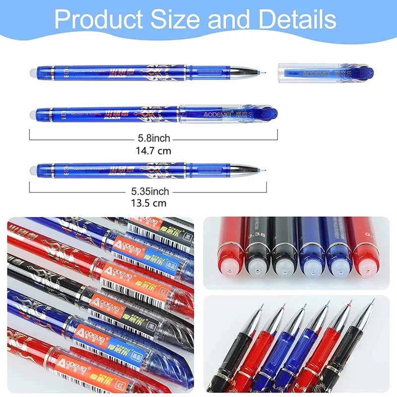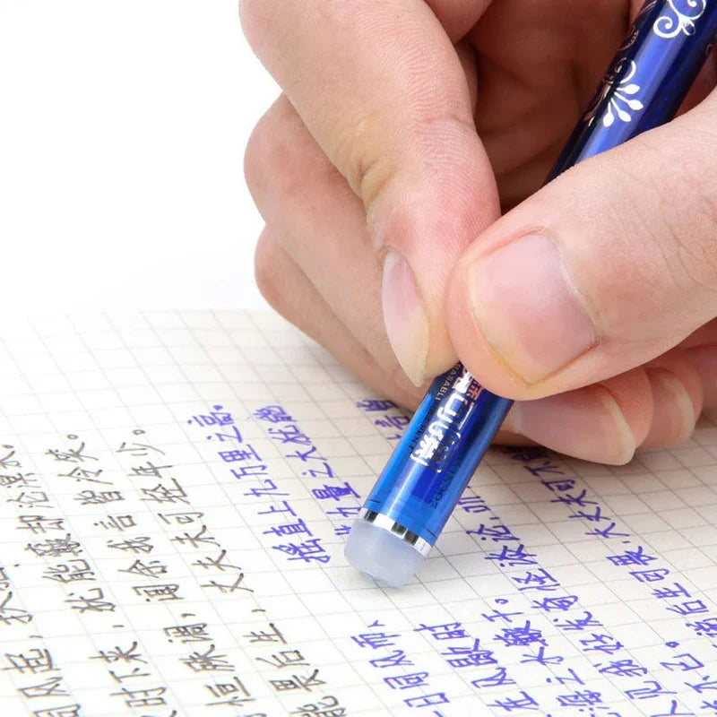 Stylos gel réutilisables avec gommes et recharges.