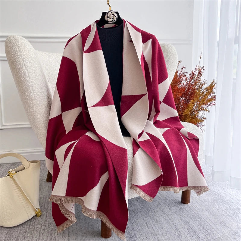 Écharpe Pashmina Élégante Fleurs Hivernale