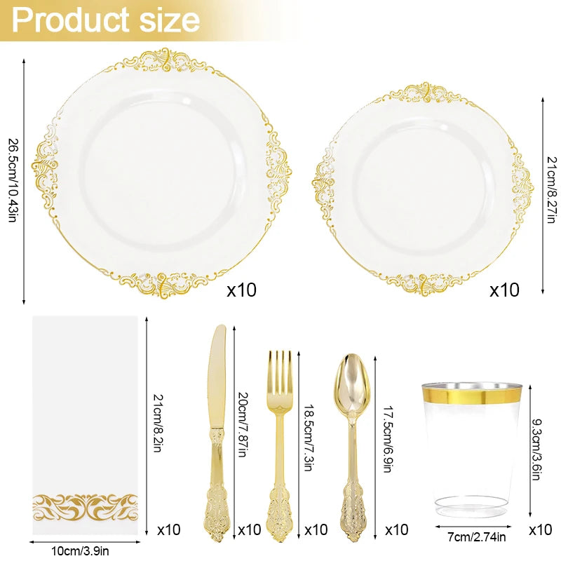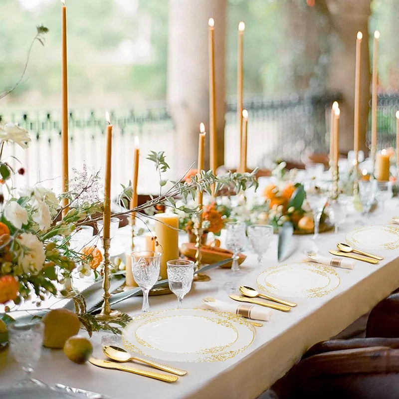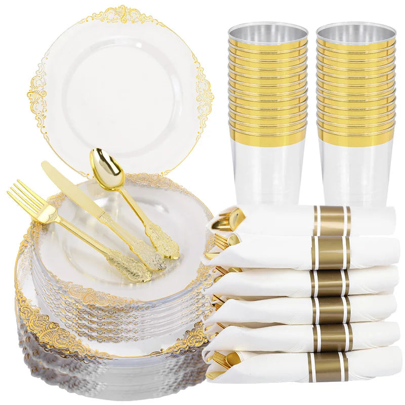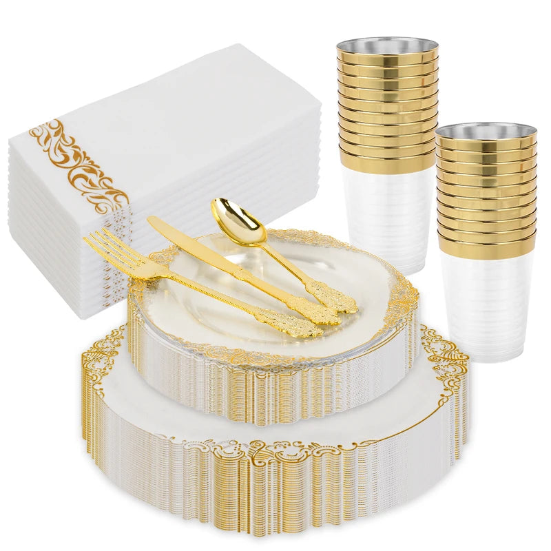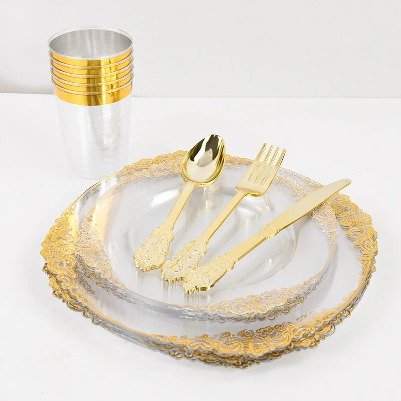 Élégance Dorée - Vaisselle Jetable 70 pièces