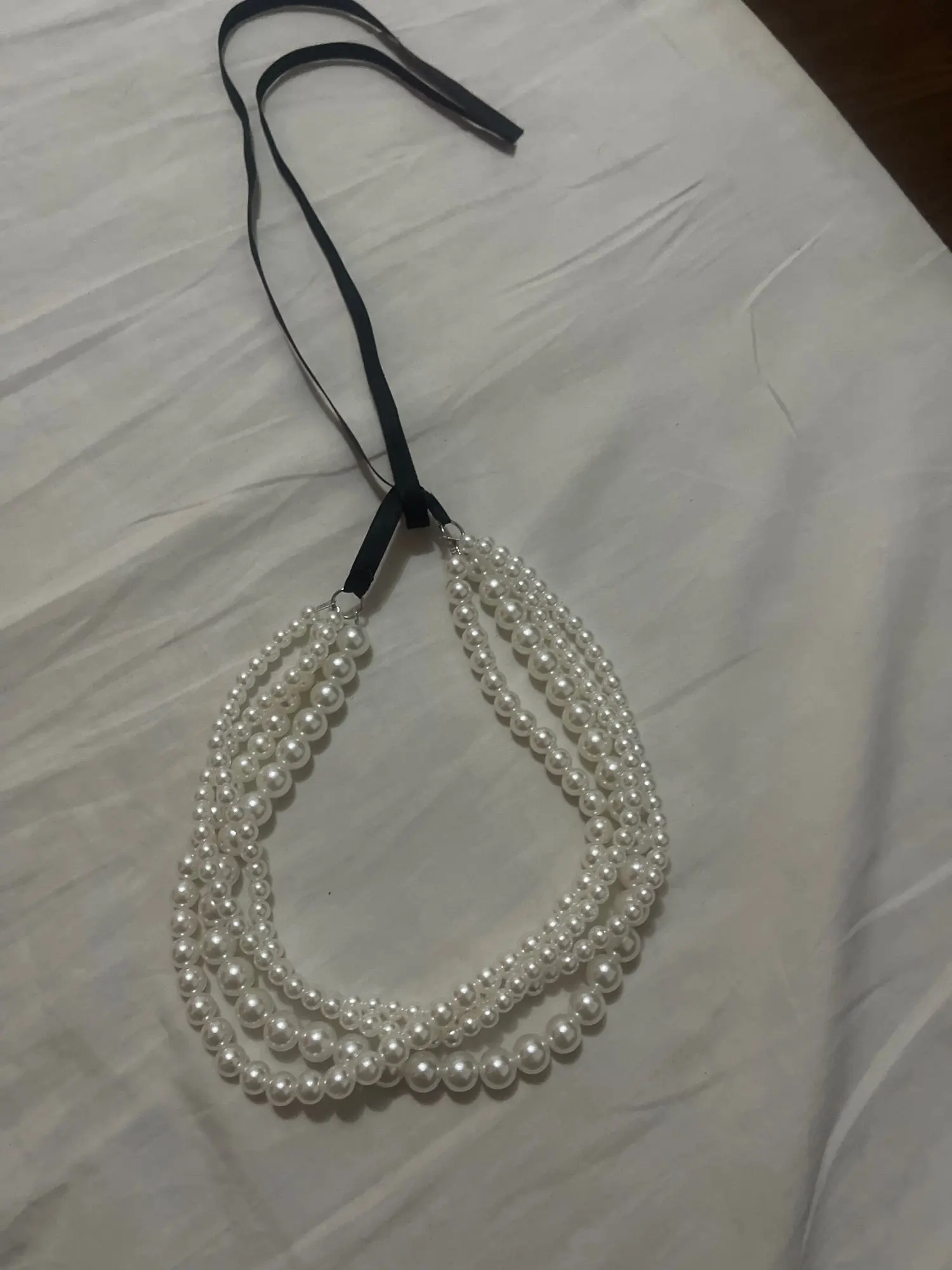 Collier Élégant à Perles Blanches & Ruban Noir