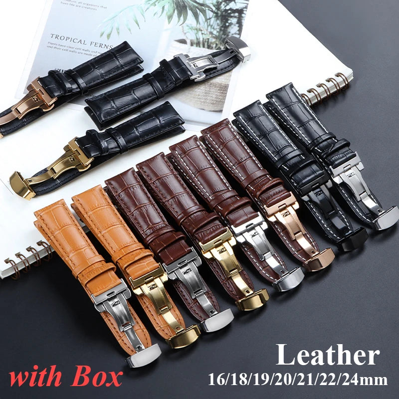 Bracelets en cuir véritable avec boucle papillon 18-24mm
