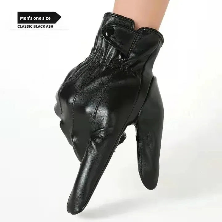 Gants en cuir polaire tactiles pour moto - Hiver chaud