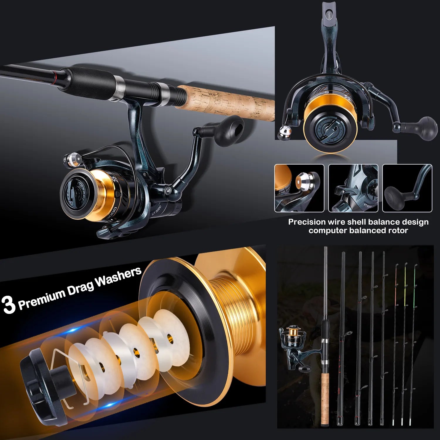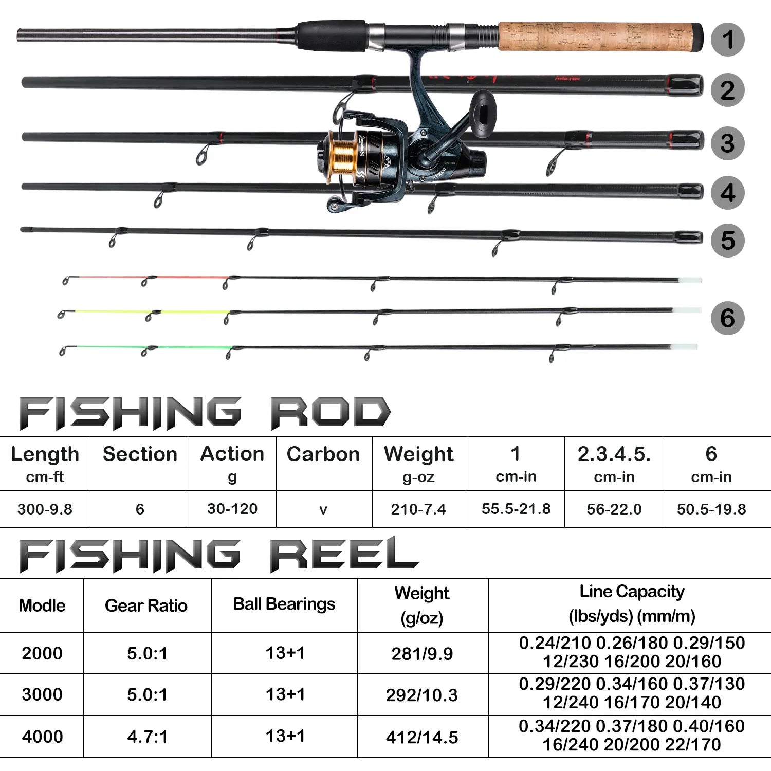 Combo Pêche Carbone 1.8-3.6m & Bobine Métal 5.2:1