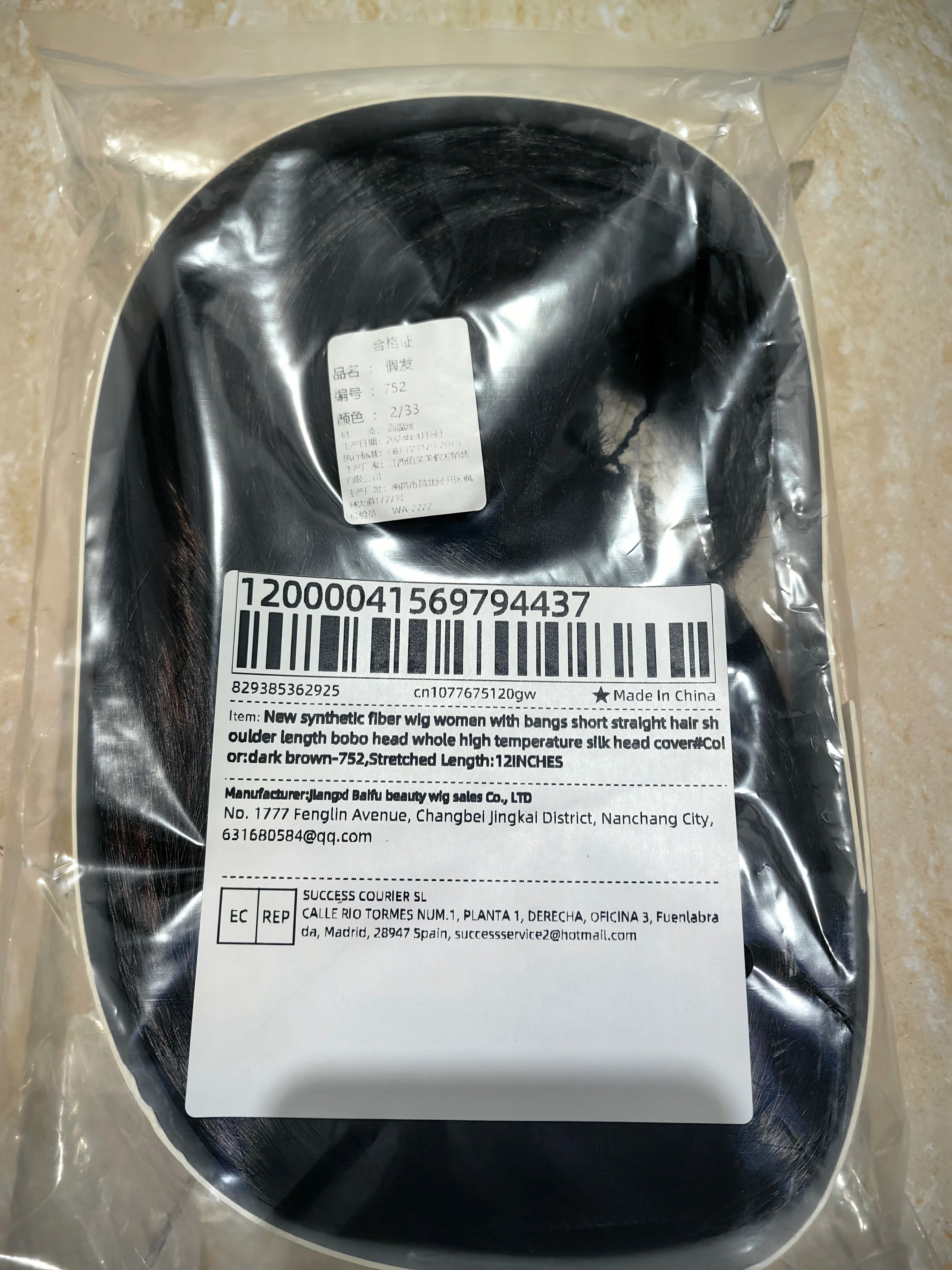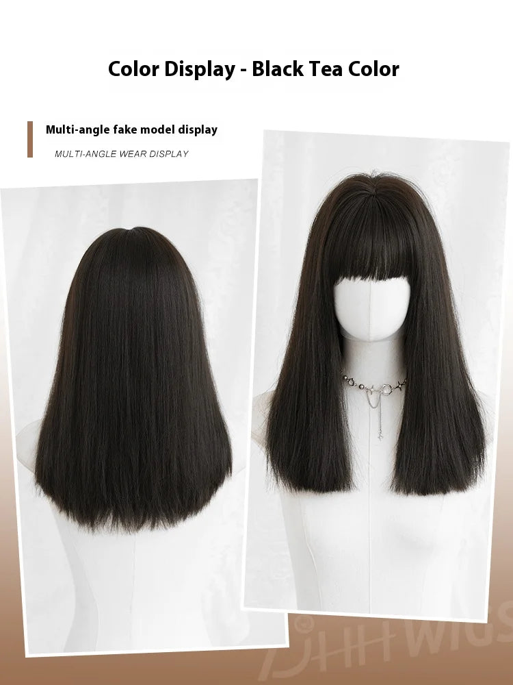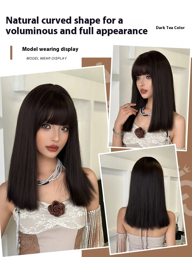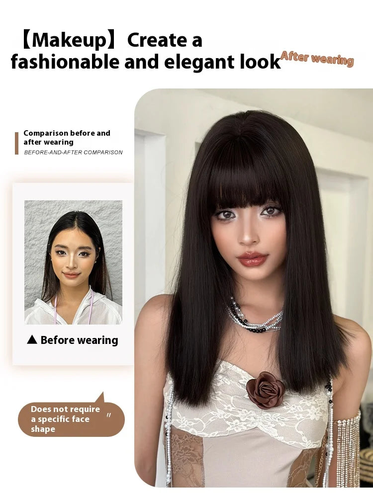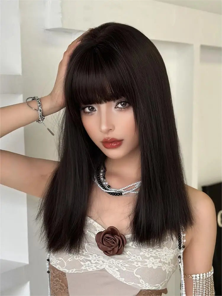 Perruque Femme Frange Noire Mi-Longue Naturelle