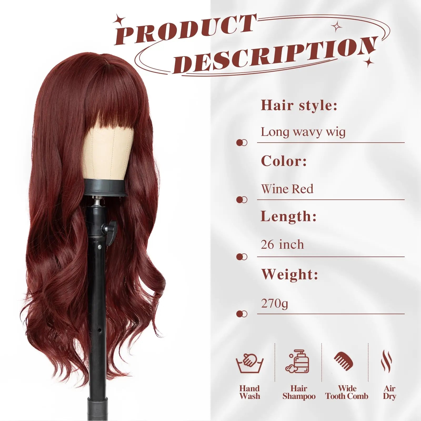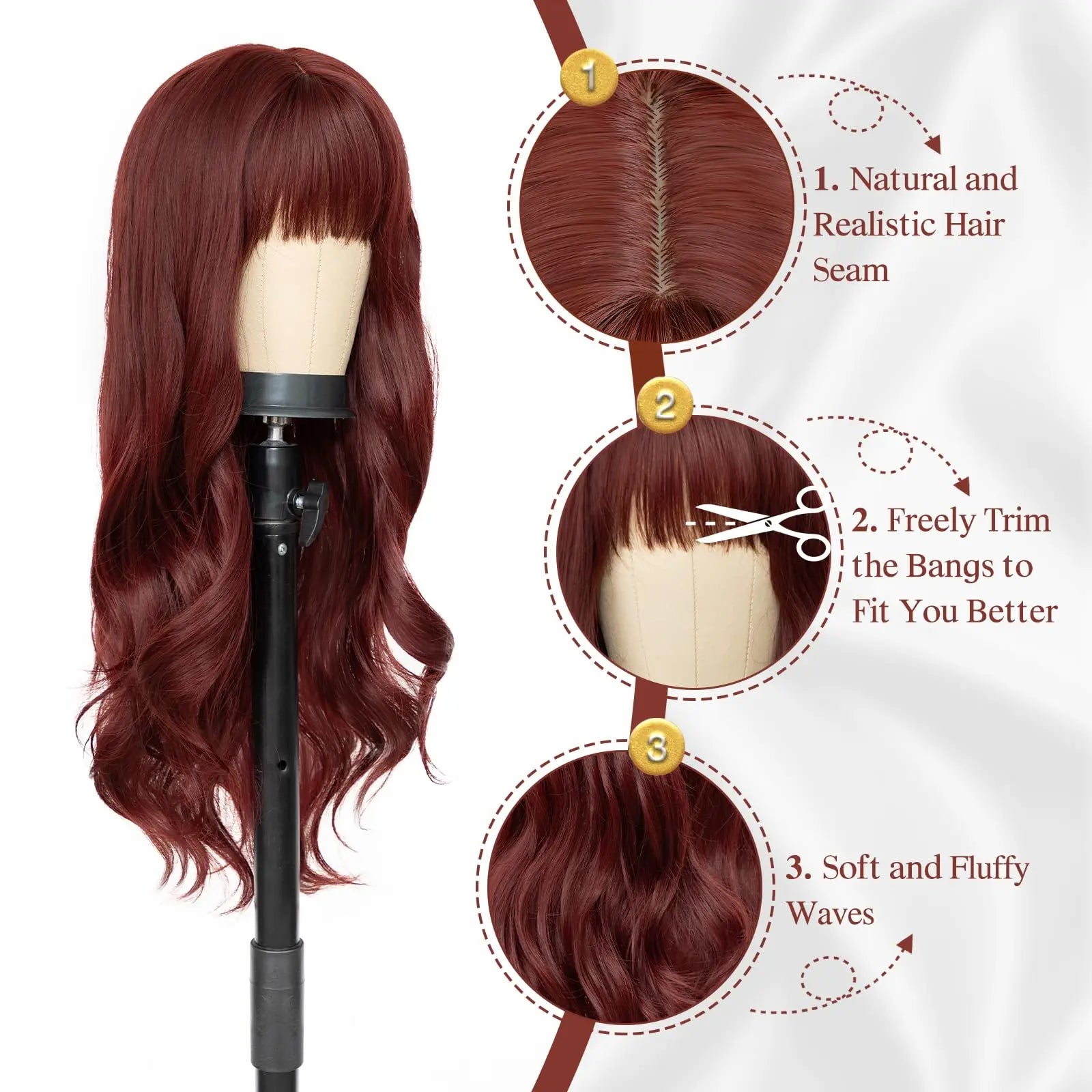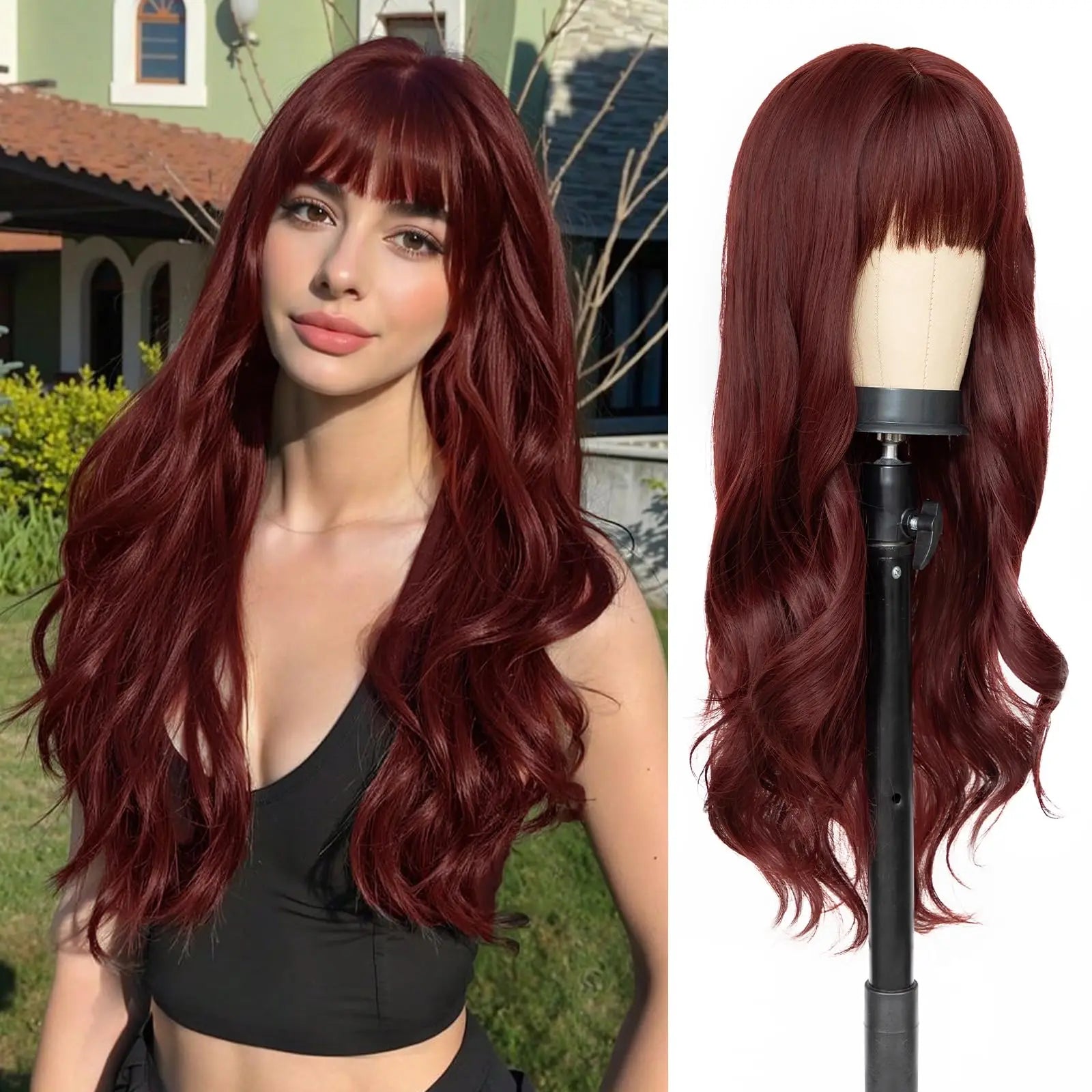 Perruque Vague Rouge Vin - Style Festif et Cosplay