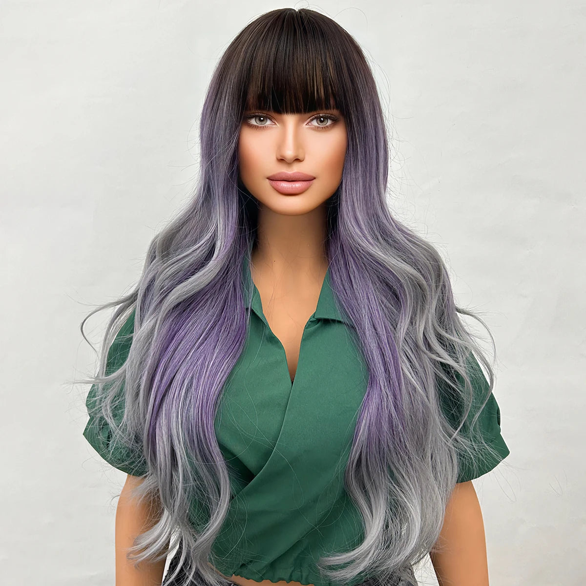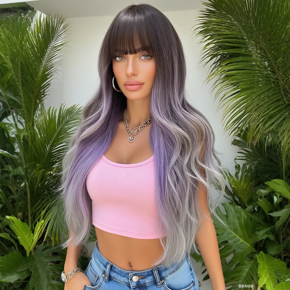 Perruque Violette Ondulée à Frange