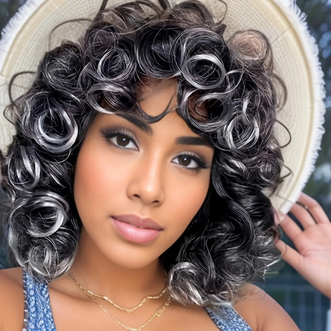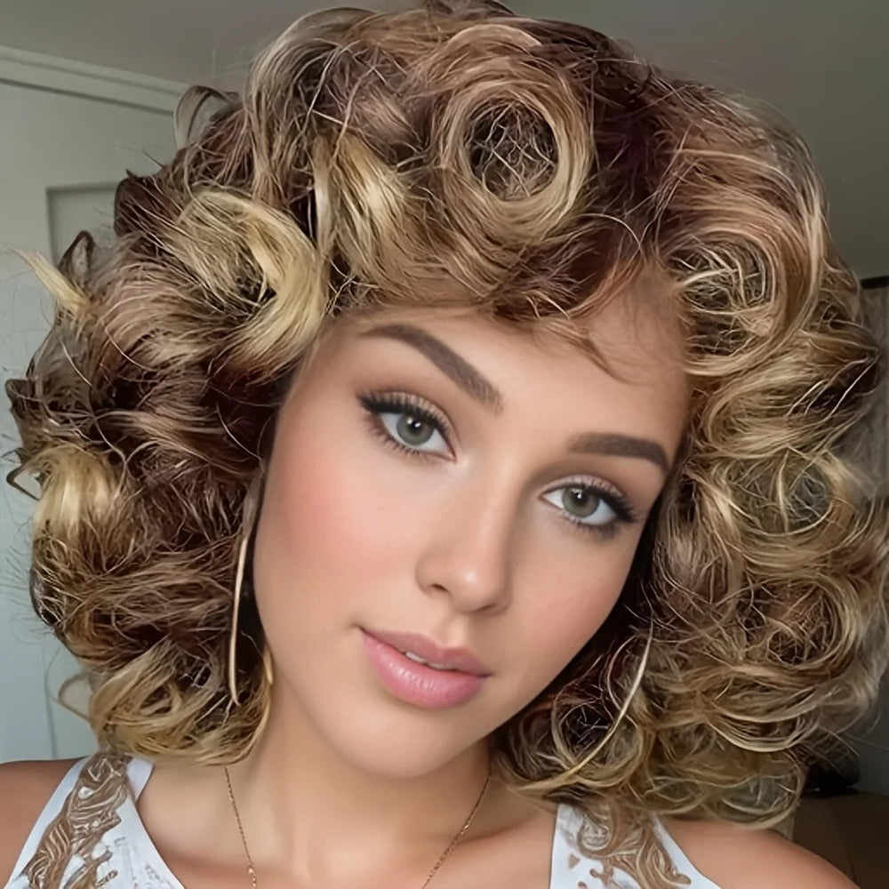 Perruque Bouclée Frangée Multicolore 30 Résistante