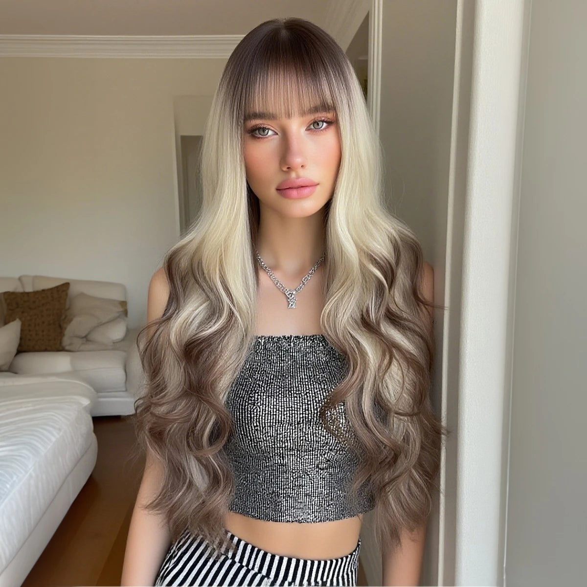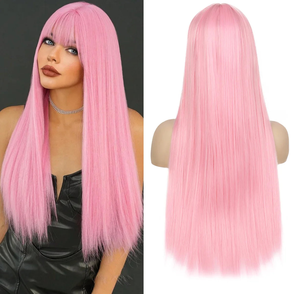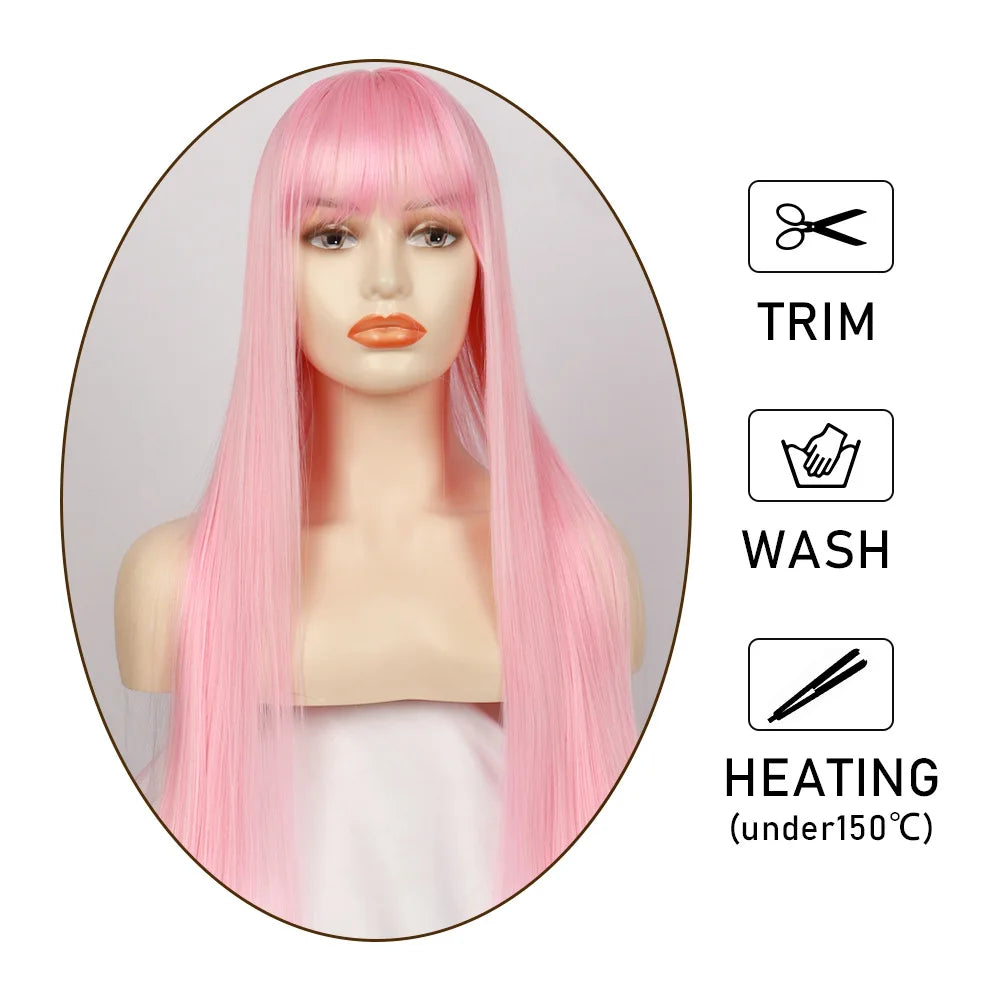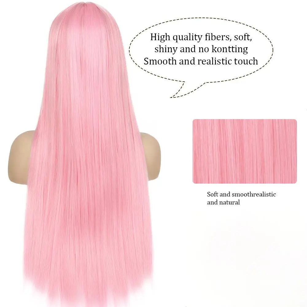 Rose Clair: Perruque Longue et Lisse pour Tous Événements