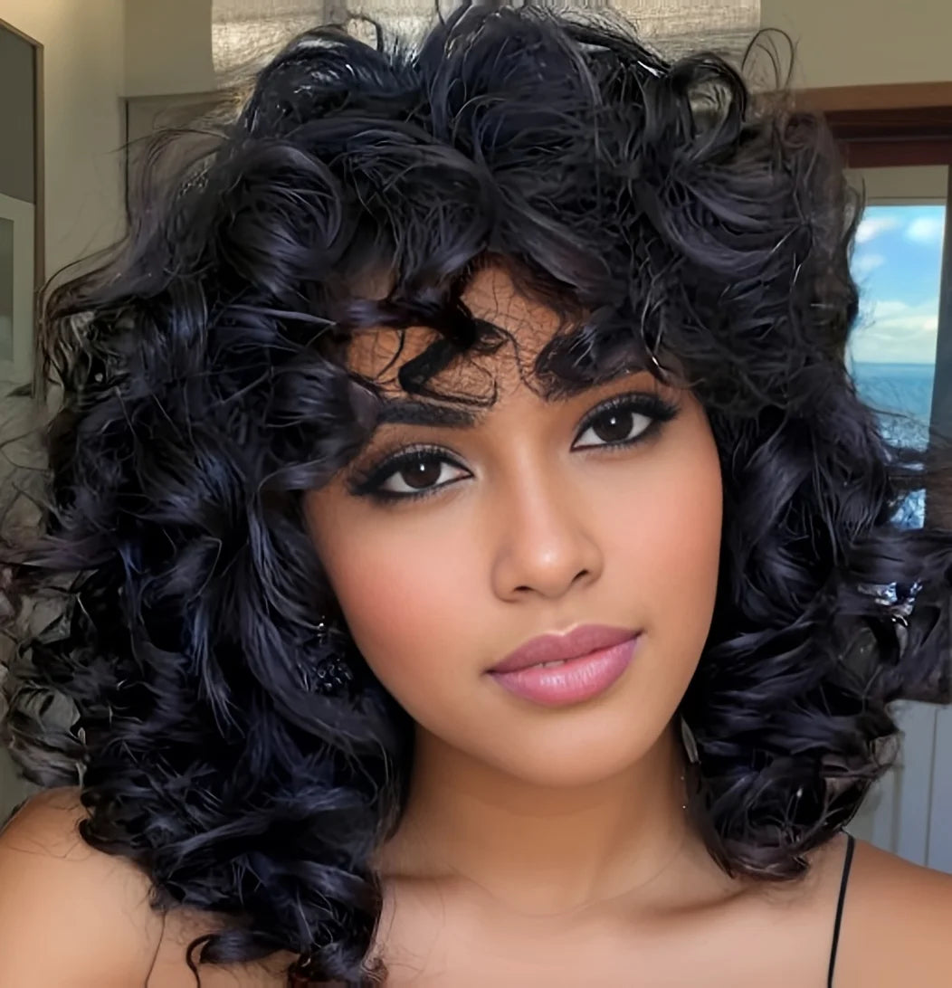 Perruque Bouclée Brune avec Frange