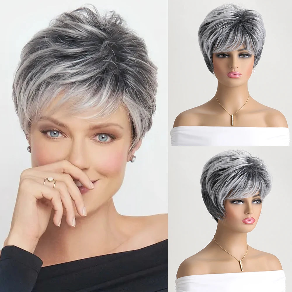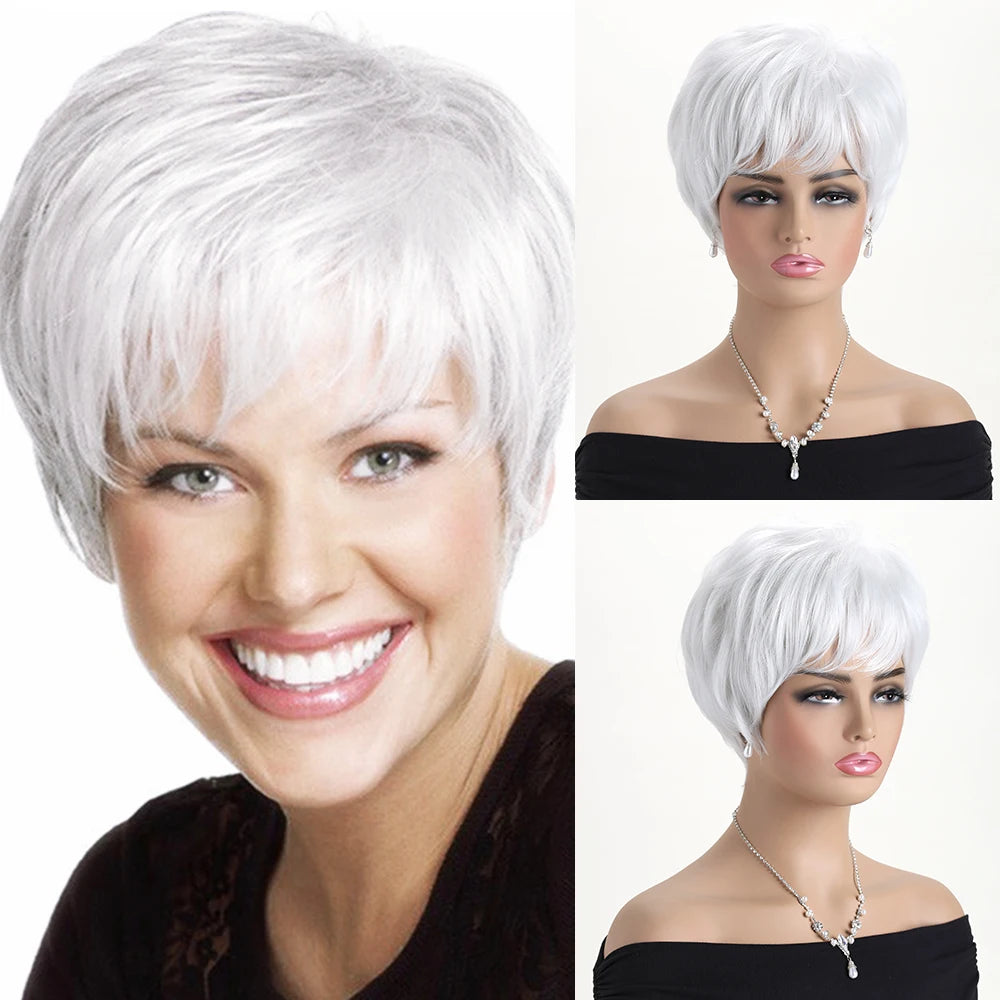 Perruque Courte Frangée Grise Bouclée