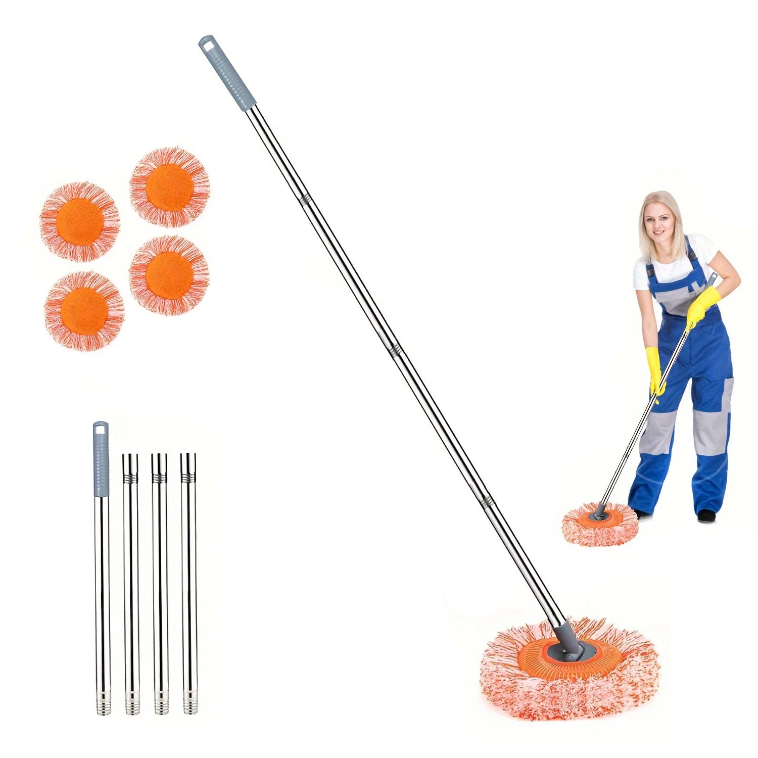 SpinMop 360° Stainless Set: 4 Heads & 4 Handles