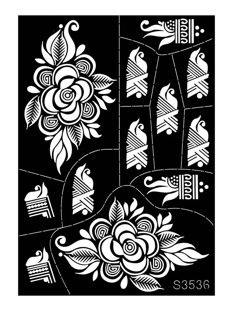 Pochoir Henné Fleurs - Tatouage Éphémère Réutilisable